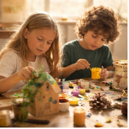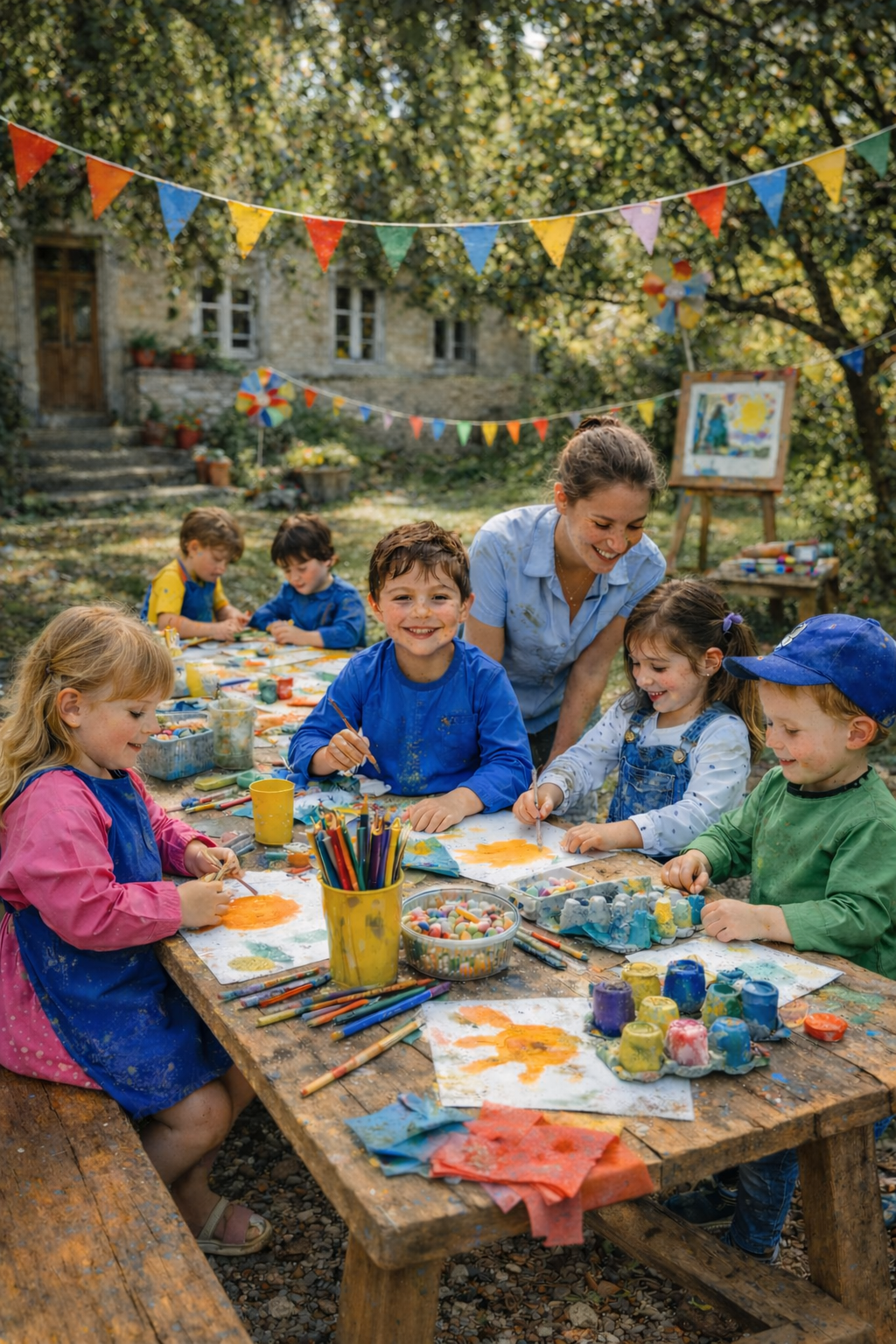 Mein Angebot umfasst kreative Kindergeburtstage, Kreativtraining im Einzel- und Gruppensetting sowie offene Atelierzeiten – mit Raum für freies oder themenbezogenes Gestalten. Der angrenzende Garten bietet zusätzlich Raum für Bewegung, freies Spiel und kleine Naturerlebnisse, die den Geburtstag auf besondere Weise bereichern. In meinen Angeboten stehen Freude am Gestalten, Raum für individuellen Ausdruck und eine wertschätzende Atmosphäre im Mittelpunkt.