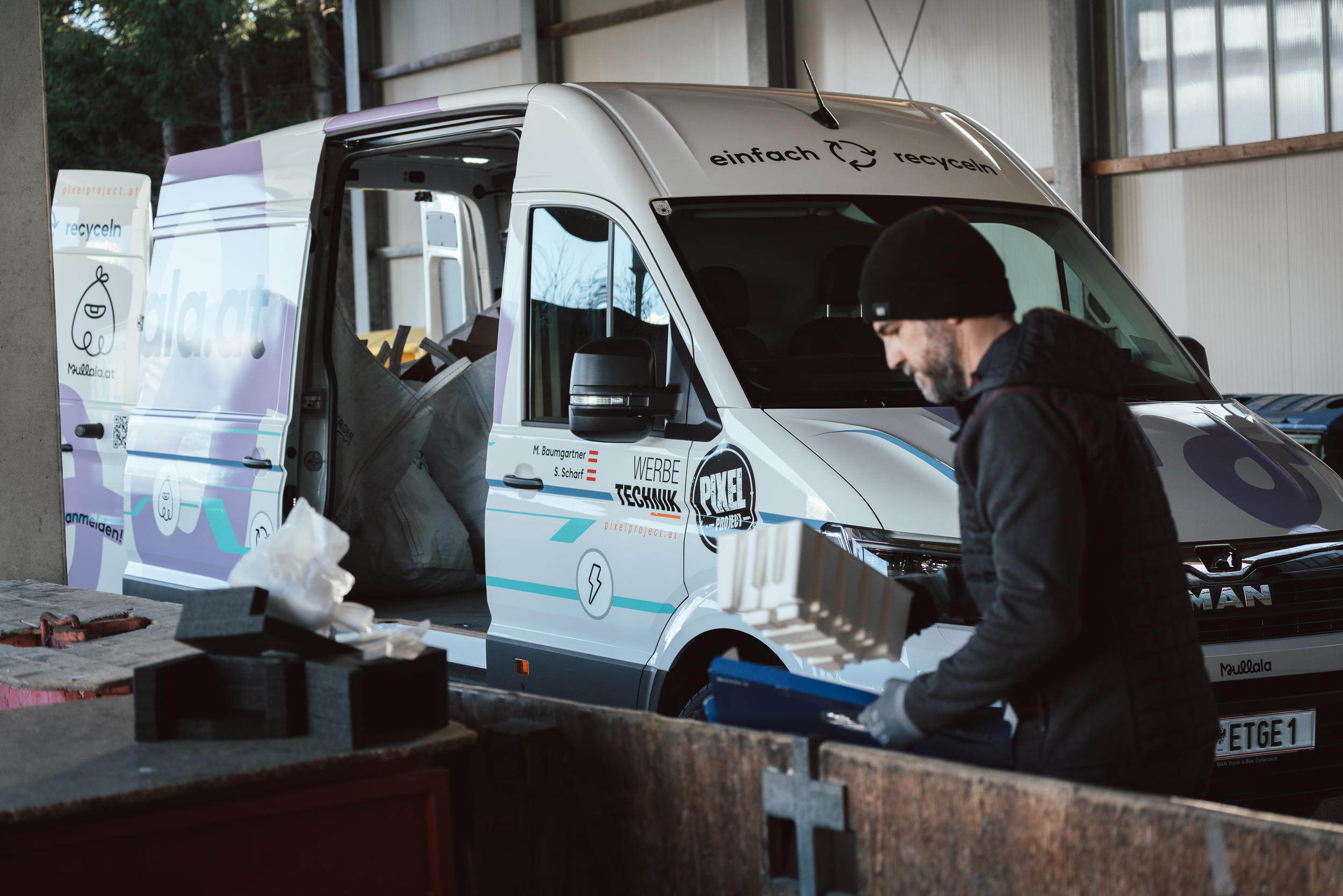 Mit unserem umweltfreundlichen Elektrotransporter holen wir eure Wertstoffe direkt vor der Haustür ab und bringen sie ressourcenschonend zum Recyclinghof. So reduzieren wir gemeinsam Verkehr, Lärm und CO₂-Emissionen in unseren Gemeinden, verkürzen die Wartezeiten am Recyclinghof und leisten einen wichtigen Beitrag zur Klimawende.